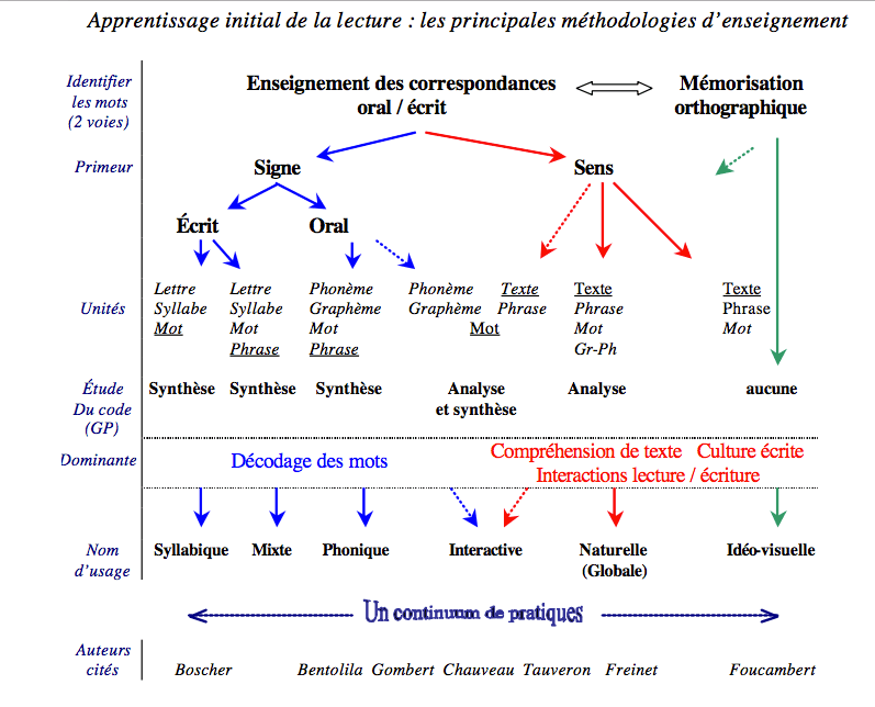 Pour faire le point sur le continuum de pratiques entre globale et syllabique, on pourra retourner au travail que Roland GOIGOUX avait publié en 2004 dans Méthodes et pratiques d’enseignement de la lecture : « Les pratiques pédagogiques, comme toutes les pratiques sociales historiquement situées, sont le fruit de métissages. Les enseignants, bricoleurs éclectiques, n’hésitent pas à emprunter aux différentes méthodes ce qui leur semble le plus pertinent, sans souci de filiation théorique. »