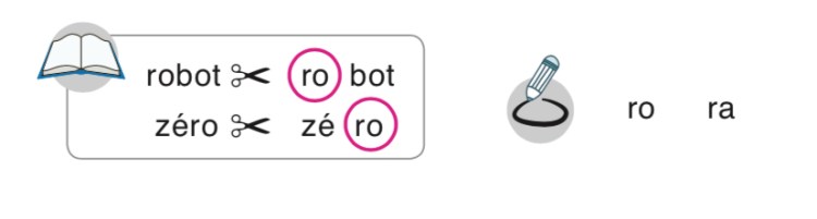 - Identification de la place d’une syllabe dans un mot, sans la syllabe écrite s’il s’agit de phonologie, avec syllabe écrite si on amorce la lecture.