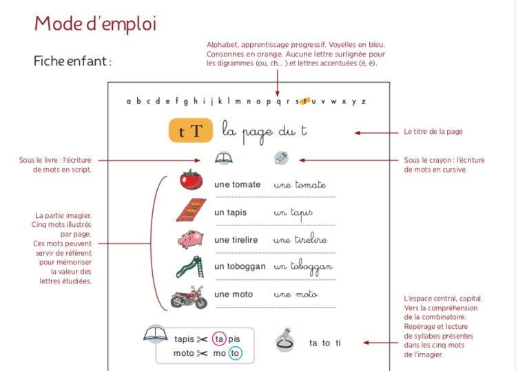 Tout moment d’écriture reste un moment de lecture. Pour illustrer les propos nous faisons référence ici à Tremplin vers la lecture, coffret d’aide à l’apprentissage de la lecture, qui comprend un jeu de loto des syllabes et un livret imagier-jeux de lecture. Il ne s’agit pas d’un nouvelle méthode, mais d’un outil pour comprendre le système alphabétique, la combinatoire, avant de s’engager dans la systématisation et le gain en vitesse.